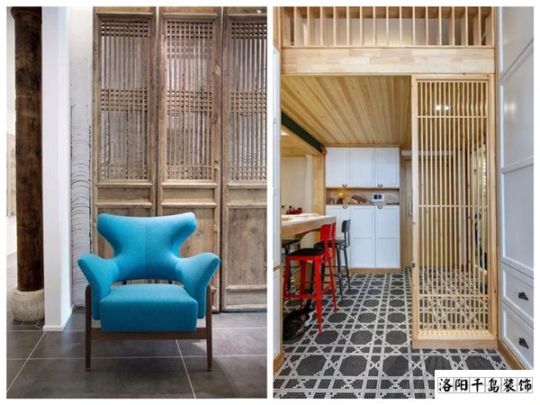 硬裝上會(huì)用復(fù)古的元素裝飾墻面或地面。比如充滿中國(guó)風(fēng)的木門(mén)。