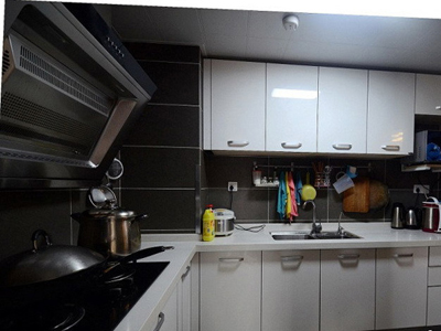 廚房的墻壁讓人很喜歡,純白的櫥柜有種十分干凈的感覺(jué)。
