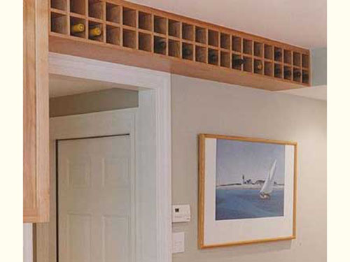 一些閑置的墻體,也可以被用來發(fā)揮用處,特別是一些原本被忽略的閑置墻體。看案例中就講門框上的空間打造成壁式酒架,很好的利用了空間。