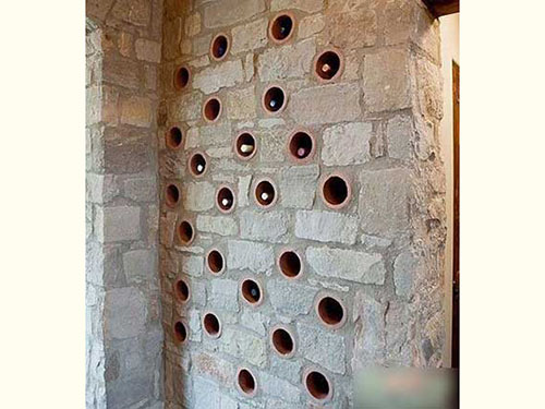墻壁外側加了一層裝飾性的巖石層,不僅給予酷酷的美麗外觀,墻體的空間還被鉆孔用來收納美酒,十分有趣的設計。