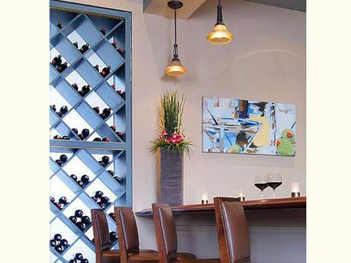 繼續(xù)利用墻壁空間,擱架一直是幫助墻壁實現(xiàn)收納功能的好助手,那針對于酒架,當然需要特殊造型的擱架,波浪形酒架則能很好的將美酒固定在架子上,不用擔心滾下來。