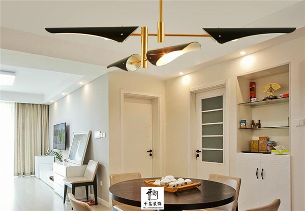 北歐風(fēng)格的基調(diào)需以淺白色為主,因此要大量搭配一些如金屬、玻璃以及顏色鮮明的家飾。比如金屬的吊燈。