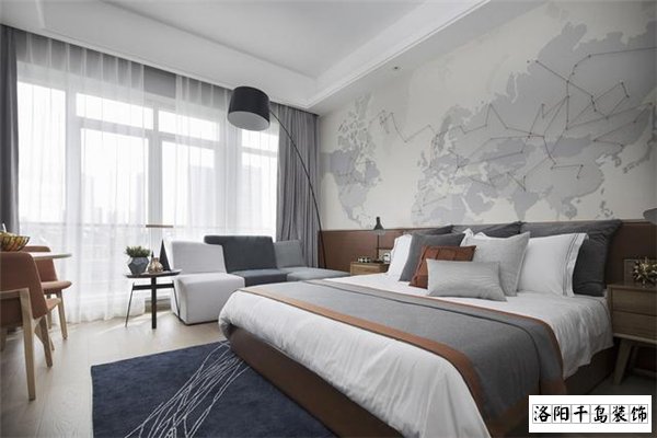 我真是沒有想到臥室能夠裝修的這么寬敞大氣,主要是格局劃分非常棒,樣板間在裝修的時(shí)候把陽臺(tái)與臥室打通,這樣使得空間進(jìn)一步得到了擴(kuò)展,另外在背景墻上采用高級灰色的格調(diào),上面還有世界地圖的圖案,將臥室映襯的非常宏偉壯觀。