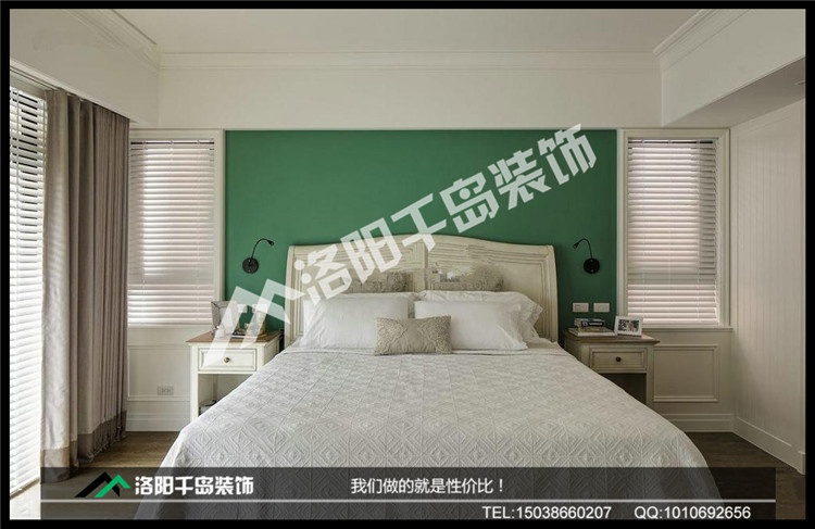 美式田園風(fēng)格的家具通常具備簡(jiǎn)化的線條、粗獷的體積,顏色清淡。它兼具古典主義的優(yōu)美造型與新古典主義的功能配備,色調(diào)明快單一,一塊綠色背景墻將房間變得活潑起來,它更適合現(xiàn)代人的日常使用。