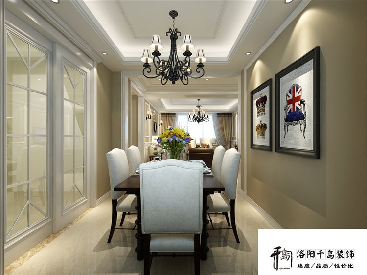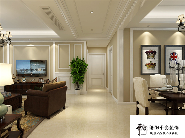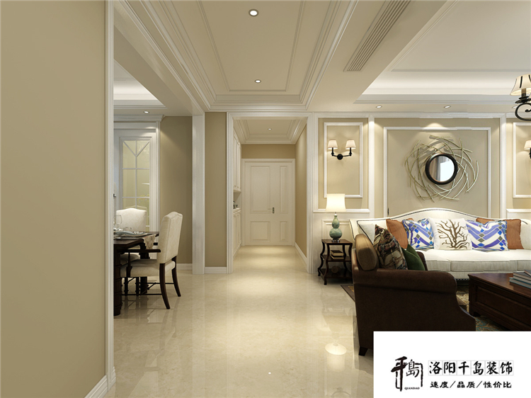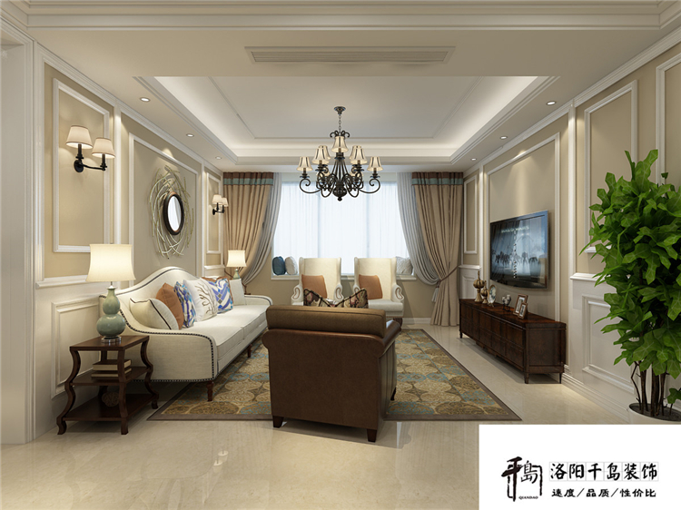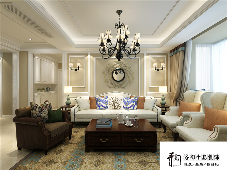 美式裝修,沒有太多造作的修飾與約束,貴氣加大氣而又不失自在與隨意。家具風(fēng)格主要植根于歐洲文化,強(qiáng)調(diào)簡潔、明晰的線條和優(yōu)雅、得體有度的裝飾。在空間分配上,設(shè)計(jì)師盡量去關(guān)心每一個(gè)家庭成員的內(nèi)心感受,從私密空間到開放式設(shè)計(jì),設(shè)計(jì)師都花了很多心思。亞麻質(zhì)感的沙發(fā),既回歸自然,又別有情調(diào)。感謝名門萬象客戶對(duì)我們洛陽千島裝飾的信任可支持!