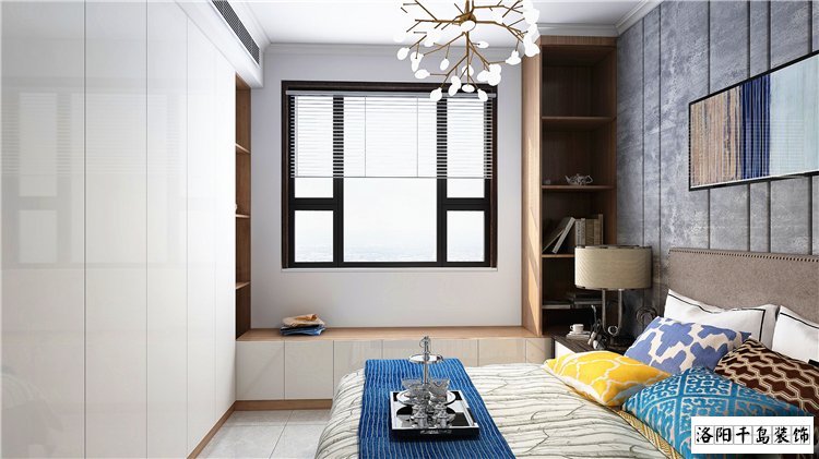 最后就是臥室,主臥衣柜一直是女業(yè)主比較糾結的地方,因為原空間衣柜位置大小,所以我們將衣柜放在床的對面,這樣一排大衣柜,再也不擔心臥室柜子不夠用了。