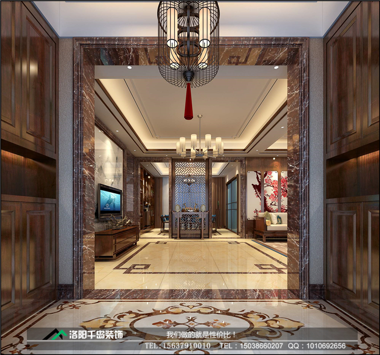 洛陽開元名郡225㎡復(fù)式新中式裝修案例@一樓入戶玄關(guān)