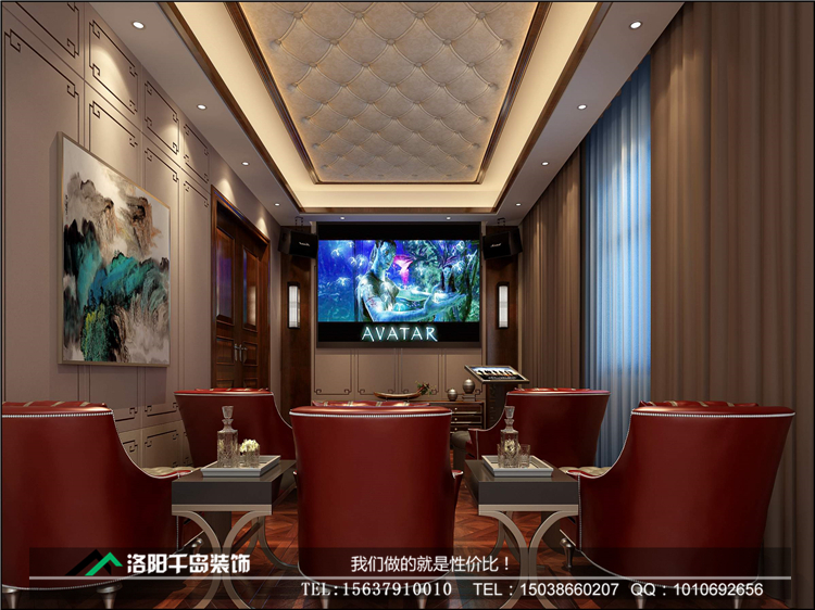 洛陽開元名郡225㎡復(fù)式新中式裝修案例@一樓影音室