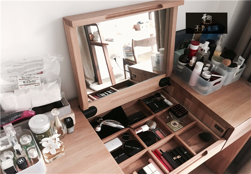 不喜歡臥室有鏡子,所以當時特意找了這種鏡子可以關(guān)上的梳妝臺。自帶的分隔欄很好用。