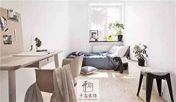 選擇粉嫩色系或灰藍(lán)色系的床單、地毯或抱枕,搭配白墻和淺木桌椅,輕輕松松打造北歐風(fēng)。