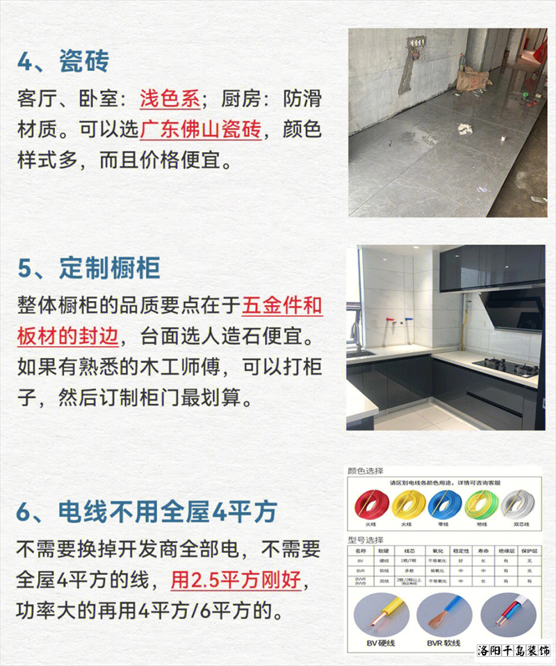 3、水電改造,水電改造有兩種方式,全改和局部改,如果你是二手房,房齡很長的電線也都老化了,那么這個(gè)錢你不能省,你把里面所有的線路通通換掉,畢竟安全才要放到第一位。但如果你買的是新毛坯房,那就做局部改造,這樣水電施工的費(fèi)用又可以輕松省個(gè)幾千塊。還有開發(fā)商用的電線,那都是國標(biāo)的,不用換。