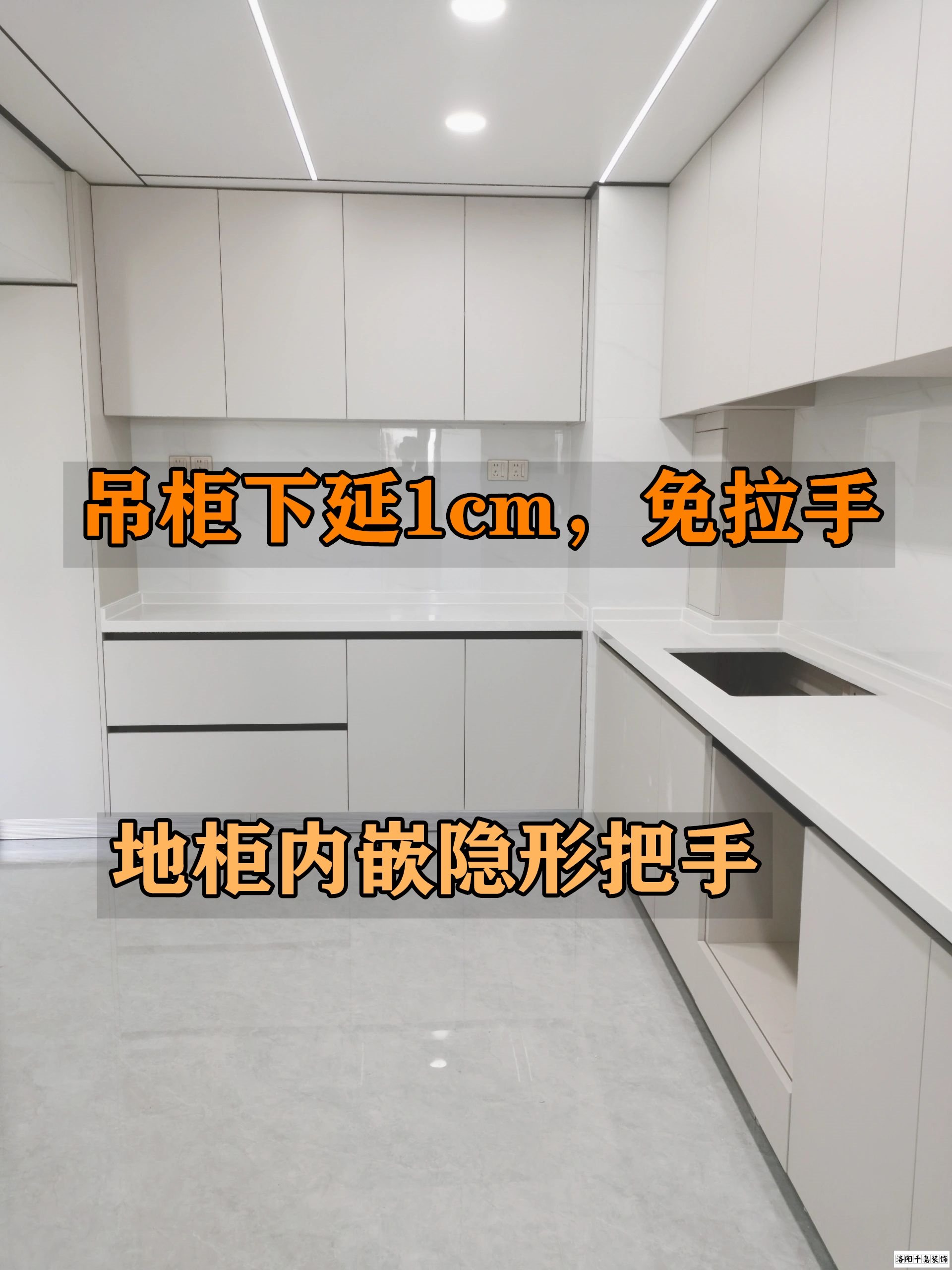 其次,櫥柜把手一個(gè)都不要做,容易磕碰不說,時(shí)間久了到處都是油,擦都擦不住,地柜柜我們就內(nèi)嵌這種隱形把手,吊柜我們就這樣多做一厘米,手輕輕一摳就開了,而且呢,也不多花一分錢,整體看上去啊,更高級了。
