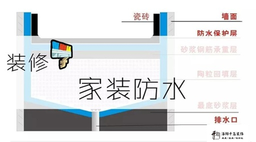 5、在裝修完工后閉水實驗:施工完畢后,封好門口及下水口,室內(nèi)蓄水24小時,檢查是不是有滲漏點