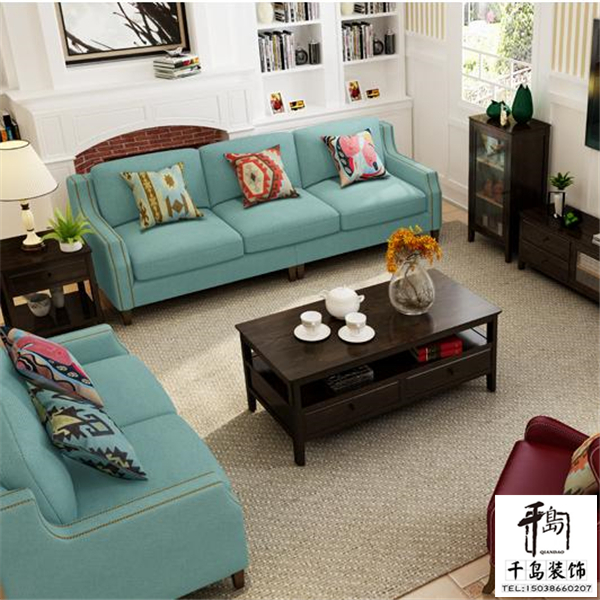 淡藍(lán)色是非常清新和干凈的顏色,會給人一種靜下來的感覺,田園風(fēng)的簡潔色彩和線條,搭配做舊金屬色的鉚釘,在簡約中又透出了時尚與復(fù)古的元素,美式的時代感油然而生,沙發(fā)采用天然的乳膠材質(zhì),健康安全,又舒適透氣,使用壽命長,穩(wěn)固的實木沙發(fā)角讓它承重力超強,棉麻的面料美觀有質(zhì)感,又親膚健康。